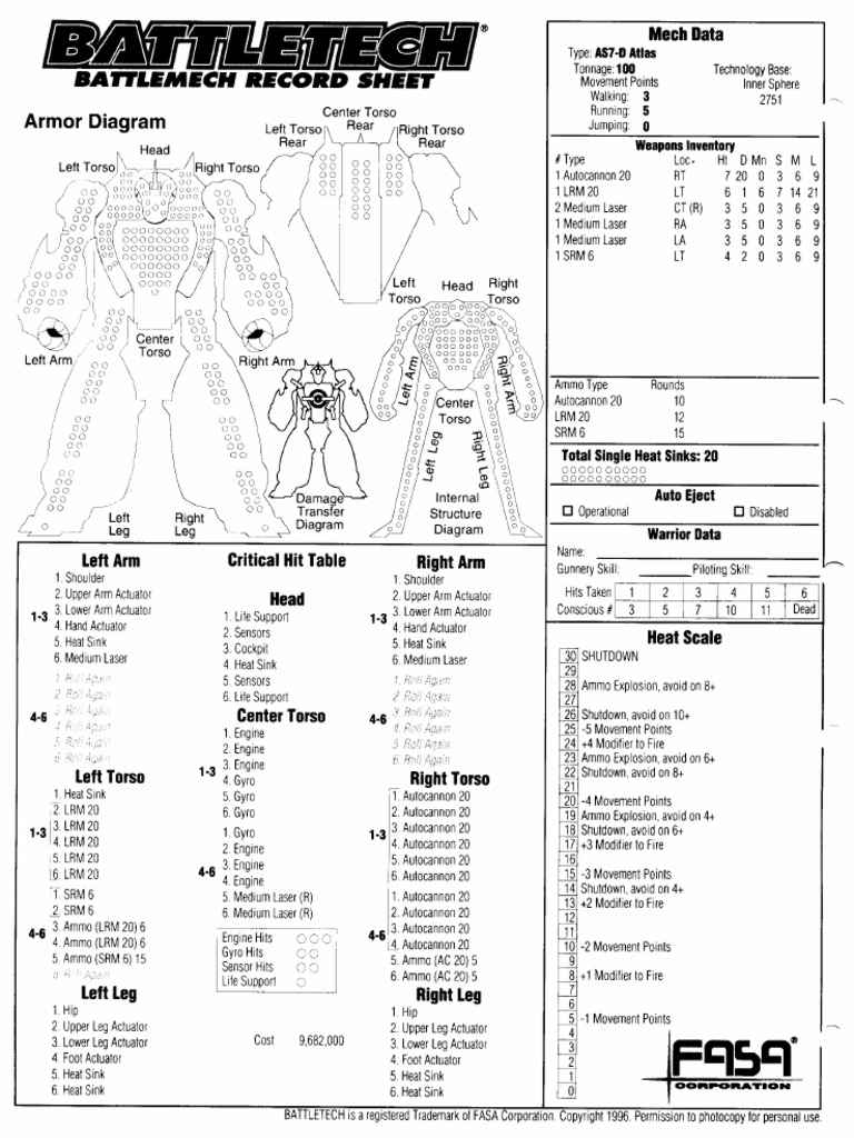 Official record sheets for battletech. Download free pdfs of rules, record sheets, maps and more for various battletech game systems.