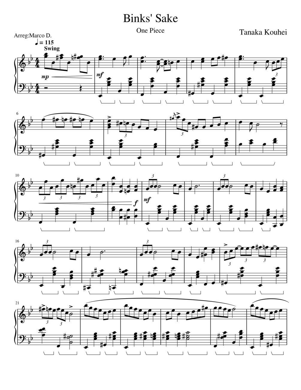 Binks' Sake One Piece SHEET + MIDI