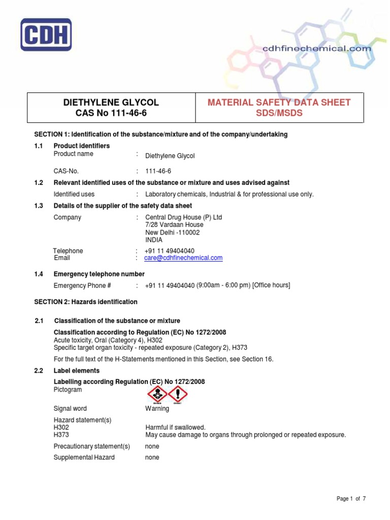 Diethylene Glycol Safety Data Sheet Download Free PDF Occupational