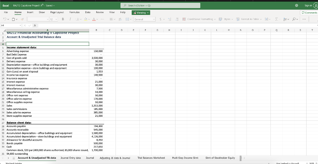 Solved Excel BA212 Capstone Project ². Saved File Hame