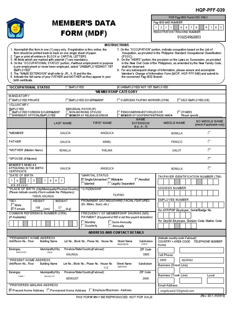 Pag Ibig+Member's+Data+Form+(MDF)+Print+No.+911146020078