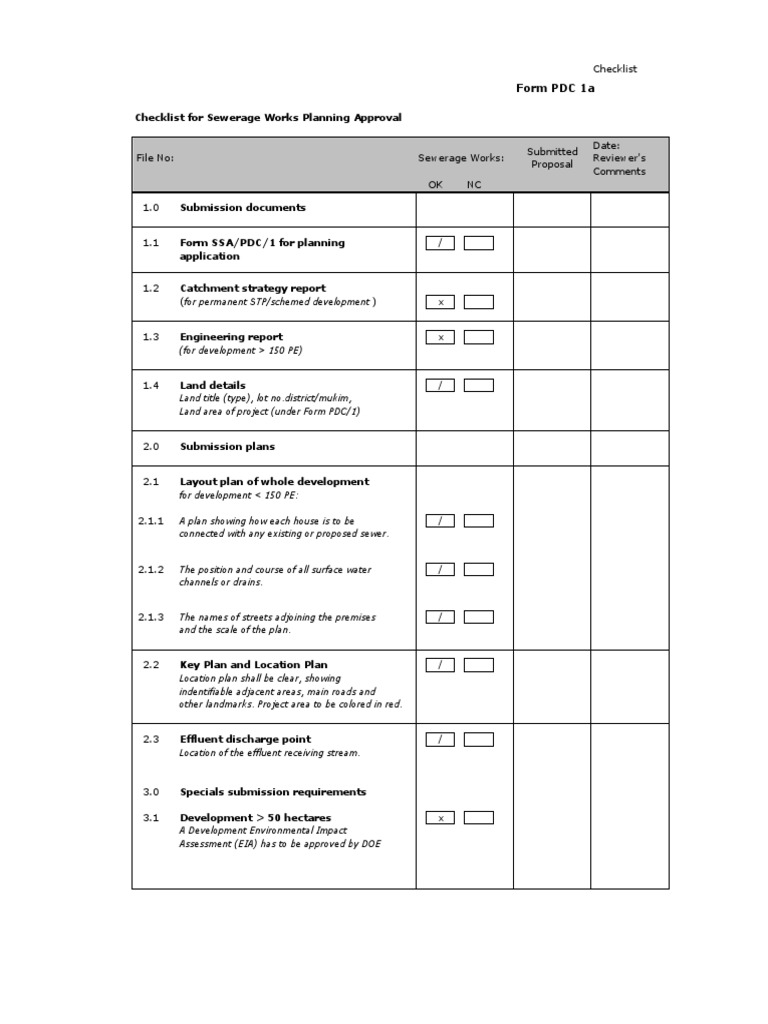 PDC 1 checklist Sanitary Sewer Environmental Impact Assessment