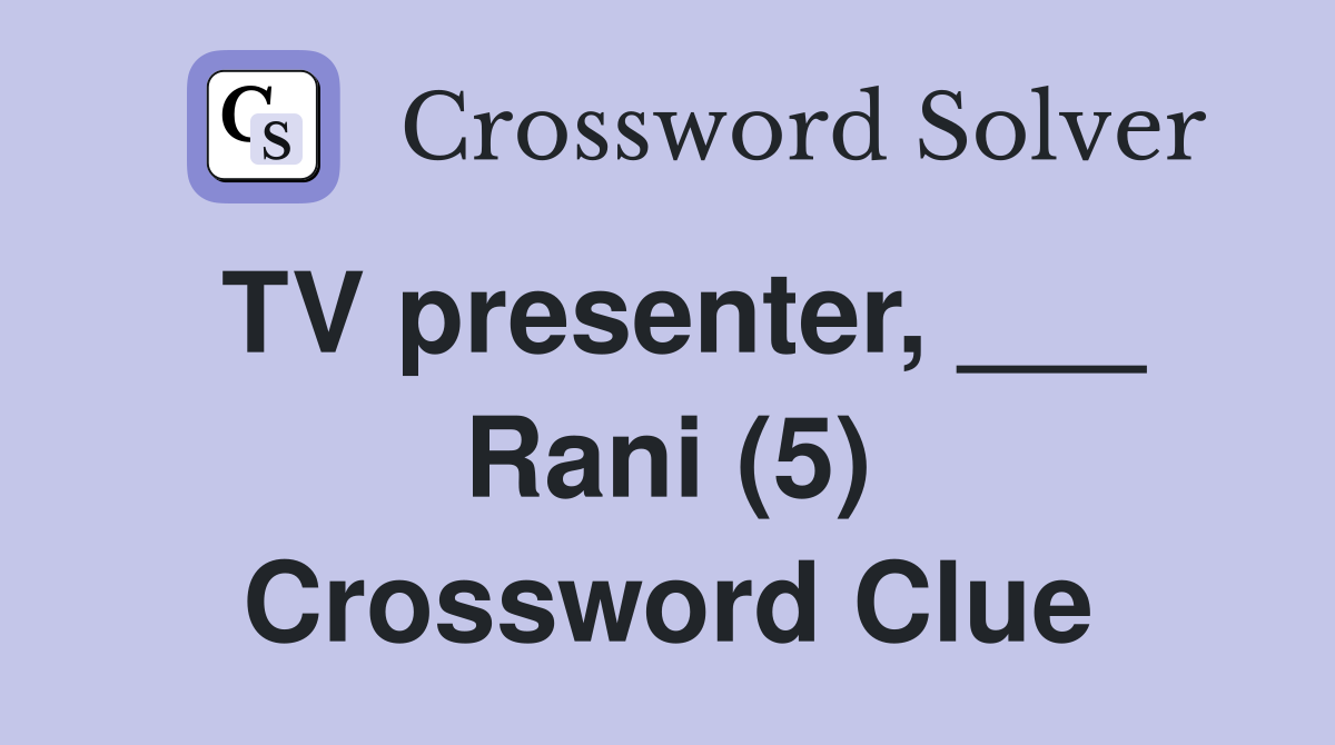 TV presenter, ___ Rani (5) Crossword Clue Answers Crossword Solver