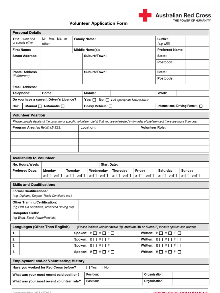 Red Cross Volunteer Application Form PDF Volunteering Privacy