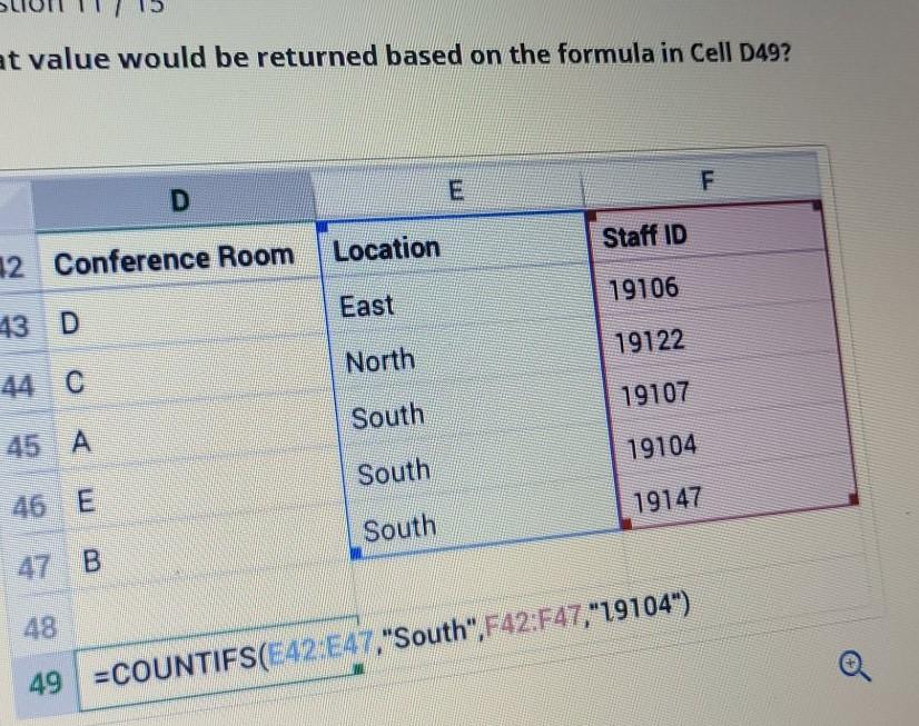 Solved What value would be returned based on the formula in Cell D49